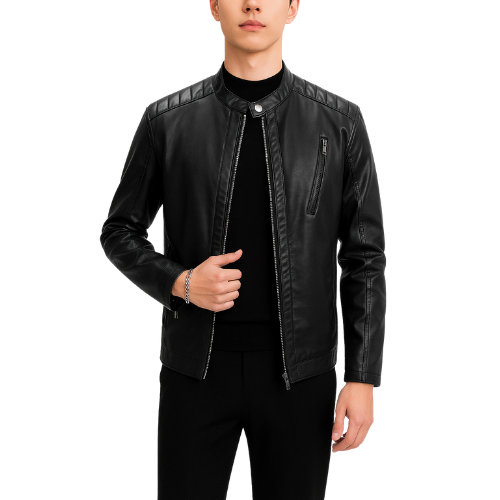 Exquisite Men's PU Leather Jacket - Stand Collar Elegance